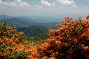 azaleas and other wildflowers and the scenic places where they grow. Pictured to the right are some Flame Azaleas (
