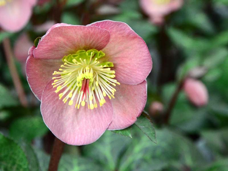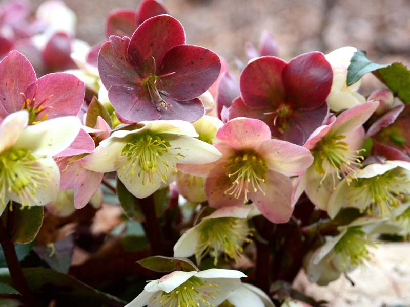 Since then, I have been moving those rogues to more distant places in the garden and have been replacing them with sterile, interspecific hybrids that are being propagated by tissue culture techniques. I particularly like 'Pink Frost' and 'Ivory Prince' which are very well behaved. Many hellebores have downward facing flowers so I tried to plant them on a bank where I could look into the blossoms. I have also tried to select for plants that have upward facing flowers. Some of the newer commercial varieties like 'Anna's Red' and 'Penny's Pink' that have that characteristic and they are sterile, too.