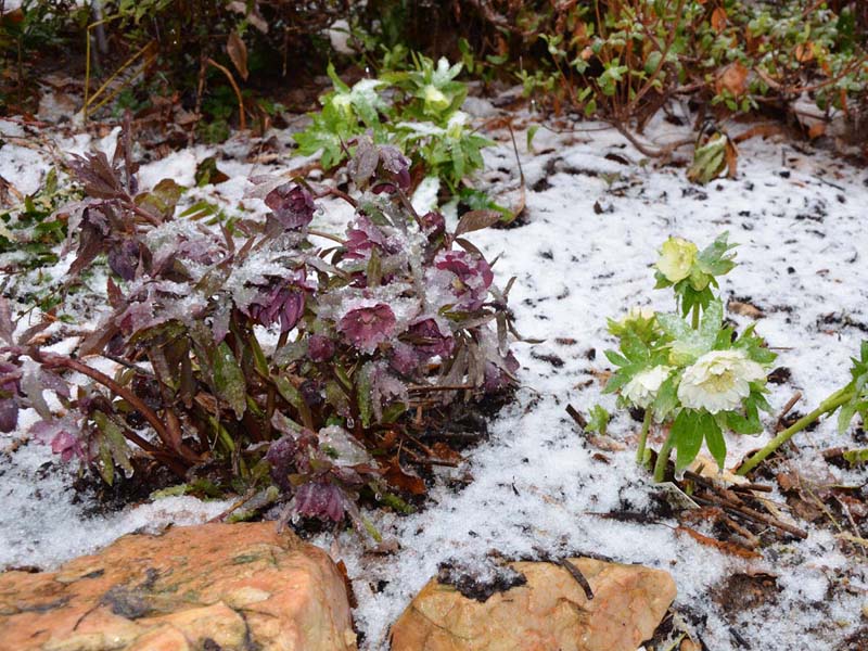 In this article, I will focus on three plant groups: Hollies, Hellebores, and Hamamelis. The berries of Holly trees color up in late fall and continue to provide garden interest until eaten by hungry birds by spring. Some hellebore varieties, especially Helleborus niger selections, can actually start blooming in late fall here in Virginia and continue through to spring. The bulk of my hellebores which are H. orientalis hybrids will not flower until late winter. The witch hazels, Hamamelis, will provide color at the end of winter, too. I am amazed at how resilient they are to cold and snow. There are a number of other plants that have winter interest such as shrubs and trees with colorful bark. I mentioned two Japanese Maples with colored bark in an article on Maples and Companion Plants in our November-December 2020 newsletter. 'Bijou' has yellow bark that contrasts so nicely against a backdrop of evergreen trees. 'Beni Kawa' is nearly identical to the Coral Bark Maple, 'Sango Kaku'. Just like the Red Osier Dogwood, Cornus stolonifera, the red branches can look stunning against the snow. Note: Special Thanks to Linda Derkach who provided some images used in this piece. All other photos were taken by the author. |
