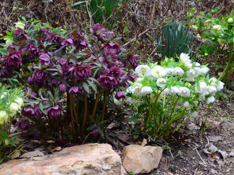 In recent years, I have been focusing on plants with double flowers since they do not reseed that heavily. I am also fond of yellow in the garden so I have been looking for yellow cultivars to add to my collection. I also like the species Helleborus niger which has upward facing white flowers and blooms earlier in the season, often by Christmas. It is called the "Christmas Rose" in many places.
