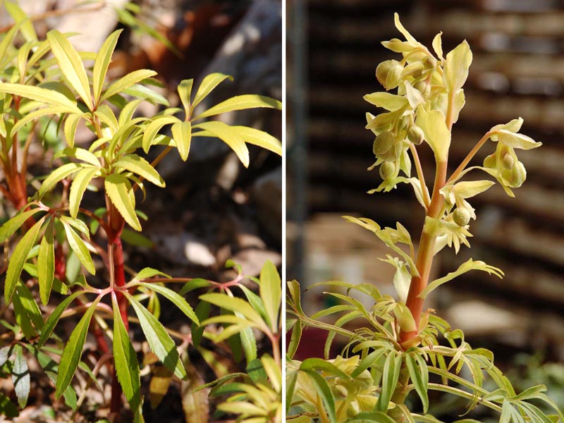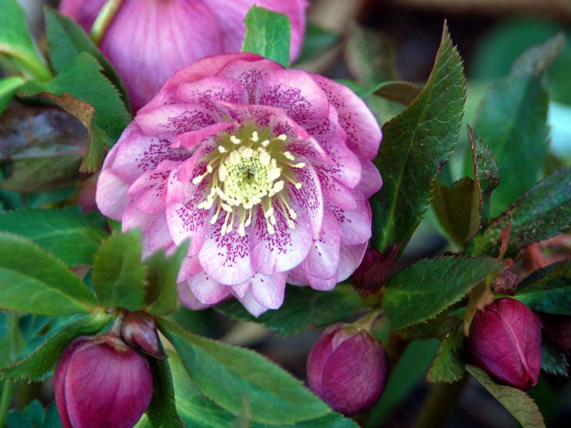Hellebores do not require much care which for me is always a good thing. When there are a few mild days during the winter, it is wise to "clean up" the typical Orientalis hybrids by removing the foliage of the previous year. It usually looks quite ratty at the end of the winter when the flowers bloom and it will be easier to do that before the new growth emerges. It is not wise to trim back the leaves on some of the other varieties like H. niger selections or those of H. foetedis. They need the leaves.