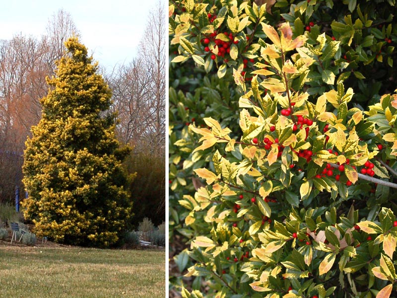 I am fortuate that the U.S. National Arboretum is nearby and their Holly Collection is wonderful. Our ARS chapter used to meet there regularly so I enjoyed visiting the Holly Collection prior to meetings to admire the various forms. There are many red-berried varieties with different foliage qualities, and a few yellow-berried selections, too.