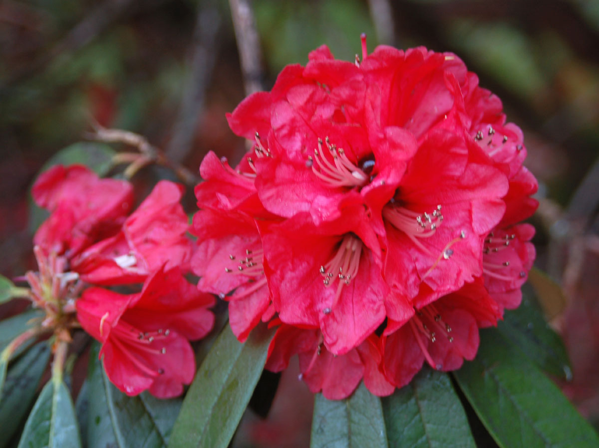 There are quite a few subspecies and variants of R. arboreum I have not seen, but all seem to become impressive tree-like specimens. A precursor of this species was likely one of the "founder populations" described by Steve Henning in his article "The History of Rhododendrons". Although originally widespread across Southeast Asia and probably rather uniform at one time, the many variations evolved over time as the Himalaya grew due to plate techtonics, the monsoons arrived, regions became isolated, and local climates changed.