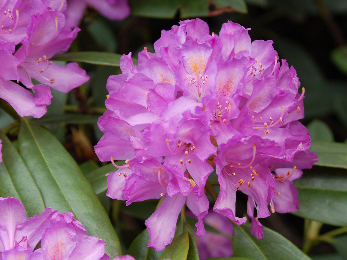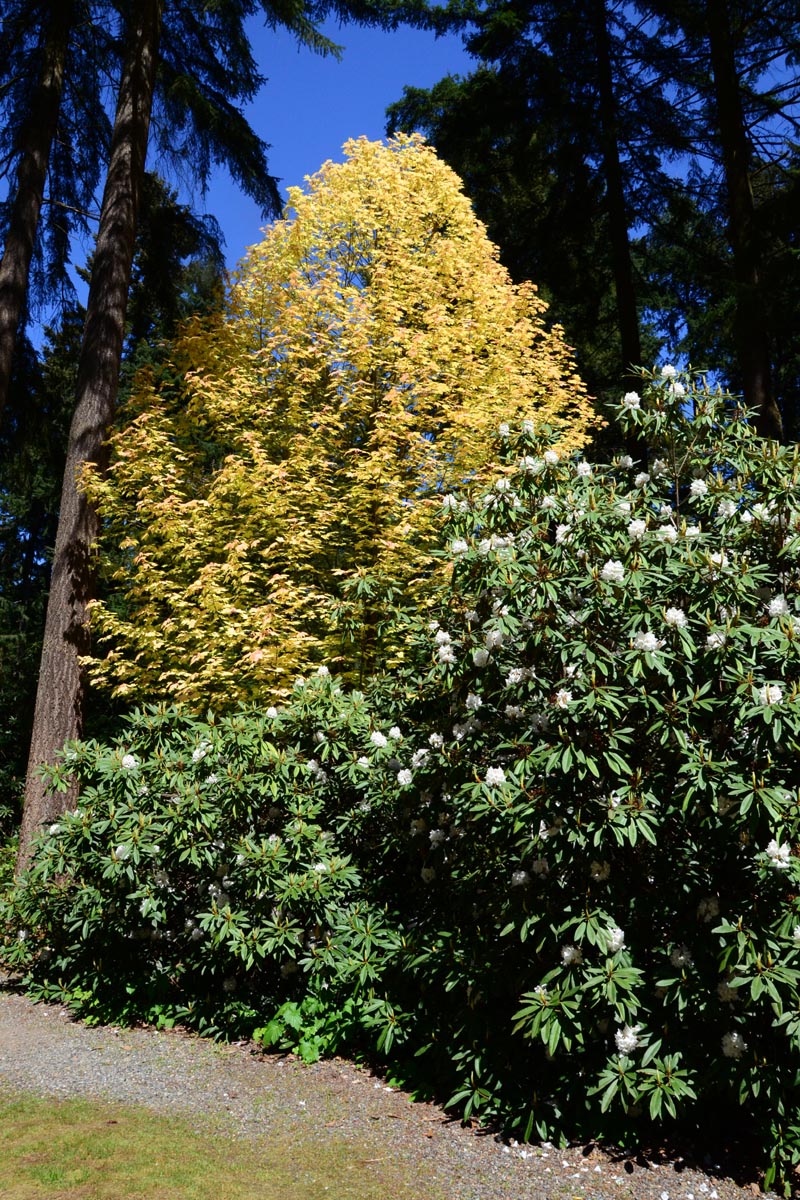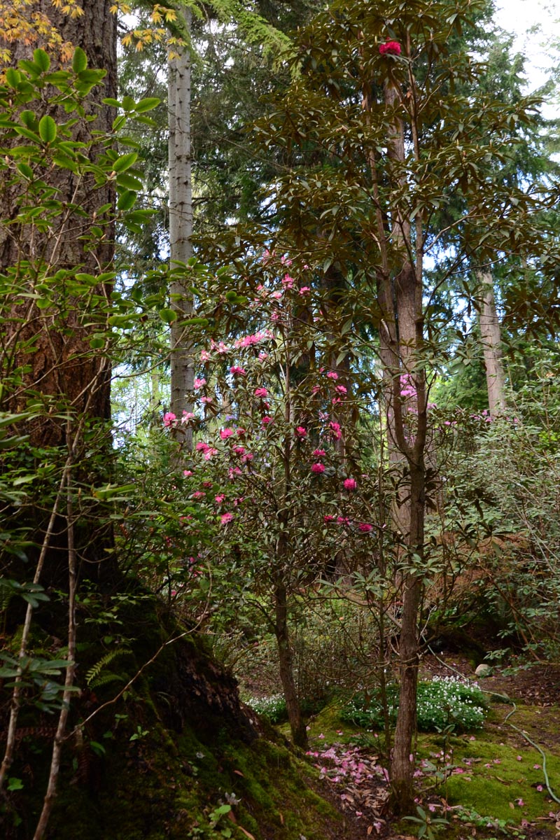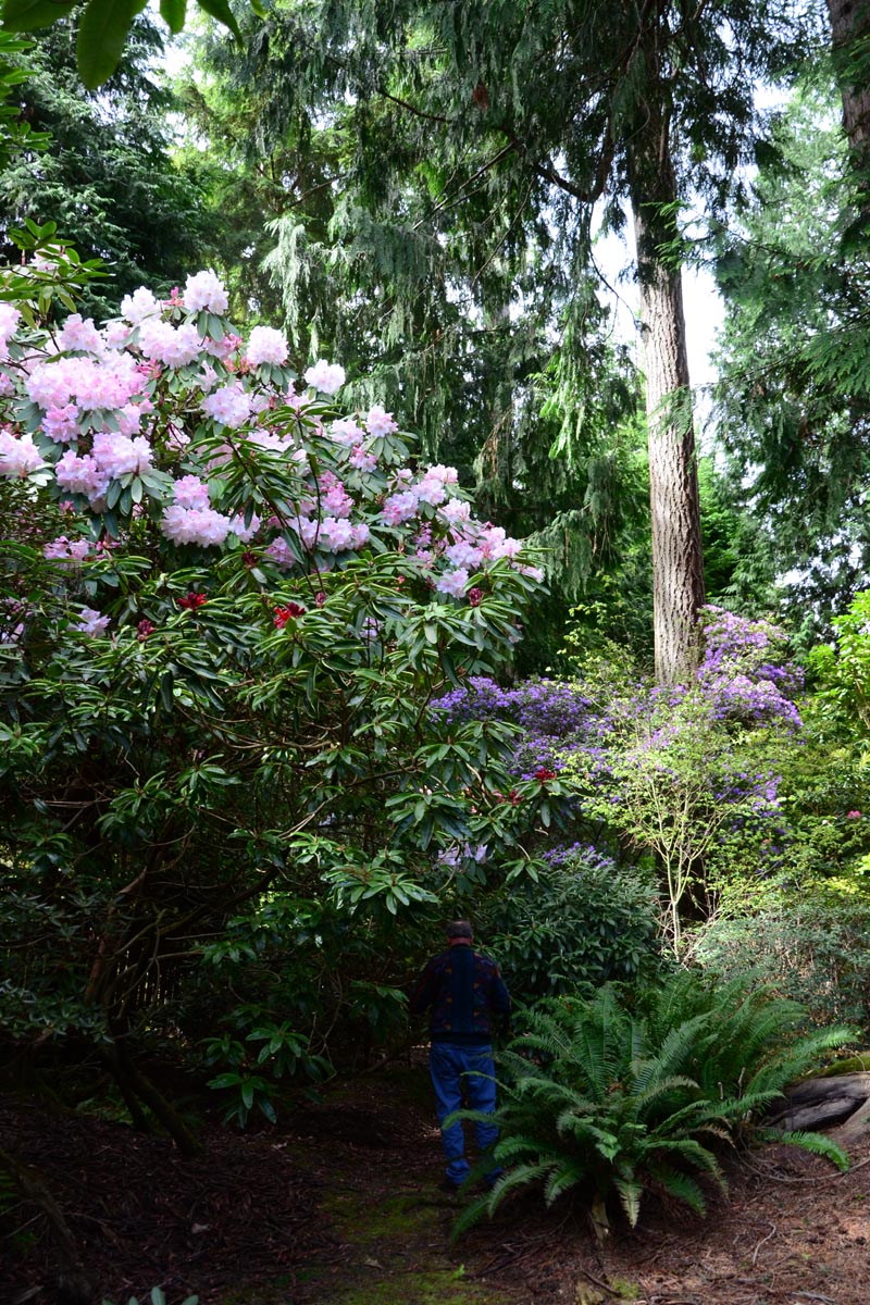 June Sinclair Garden R. fortunei, ferns, and R. augustinii |
