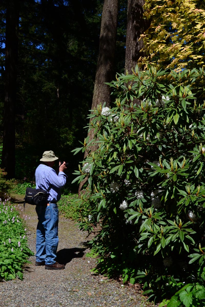 Karel Bernady photographs the white R. arboreum at the RSBG |