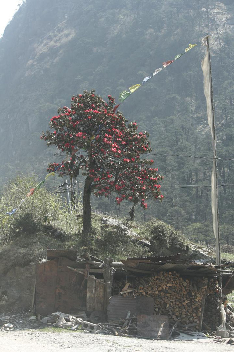 A solitary R. arboreum in Sikkim Photo: Hartwig Schepker |