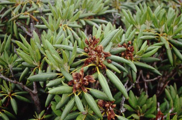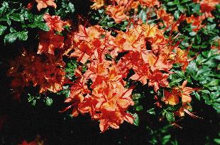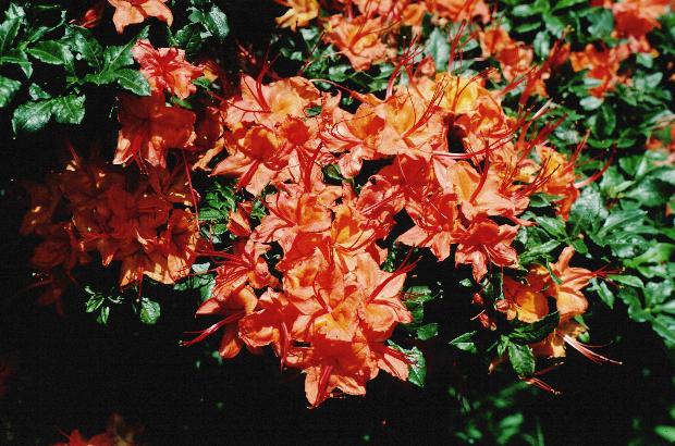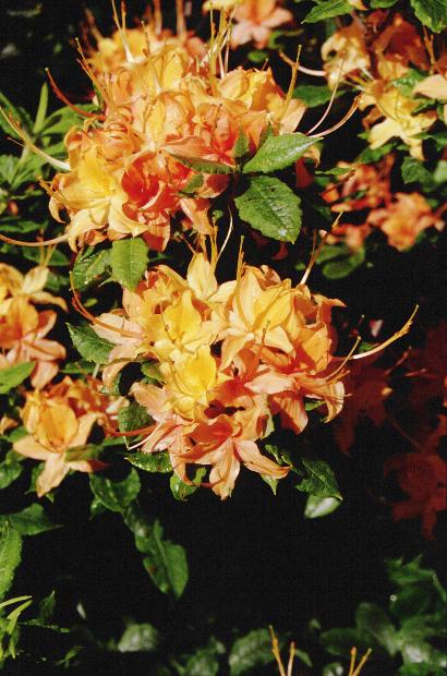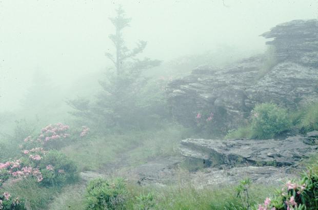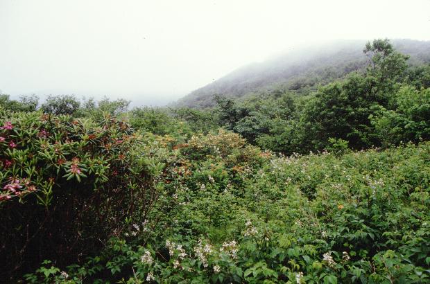 purple rhododendrons (R. catawbiense), a few flame azaleas (R. calendulaceum),