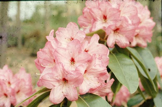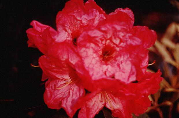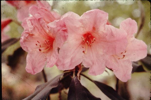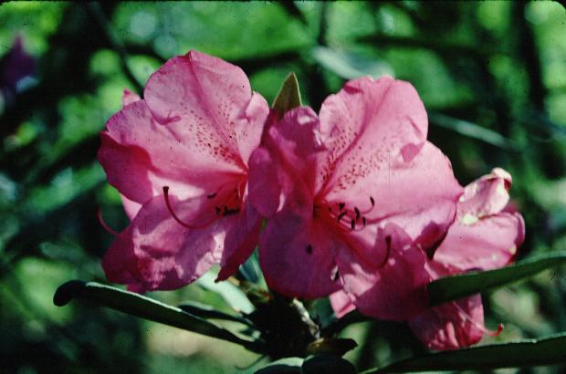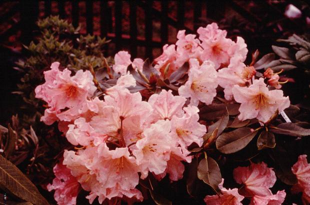 David Gable- Atrosanguineum x fortunei. Blooms about the same time as many evergreen azaleas, just as the tree leaves unfold. Hardy to minus 15 deg.
