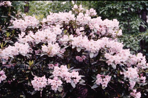 Katherine Dalton - smirnowii x fortunei. Large shapely plant, unbothered by insects. An easy grower with a trace of indumentum. Occasionally wants to bloom a bit in the fall. Hardy to minus 15 deg.