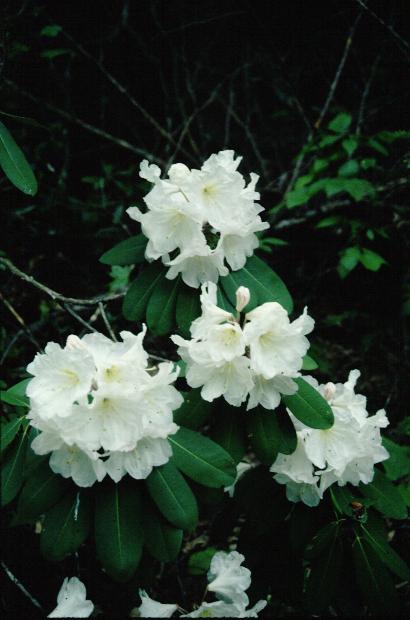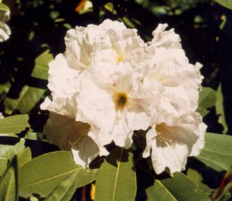 County of York- Catawbiense Alba x Loderi group. Previously called Catalode. Grows well in many conditions, best in light shade. Roots and grafts easily. Very plant hardy, to minus 15 deg. Distinctive curved leaves.