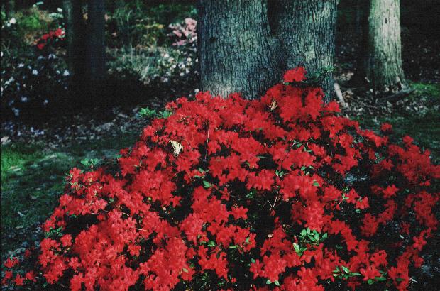 Mary Dalton- kaempferi hybrid. Hose-in-hose , early mid-season, taller than wide. Red, best in partial shade or the flowers will