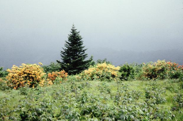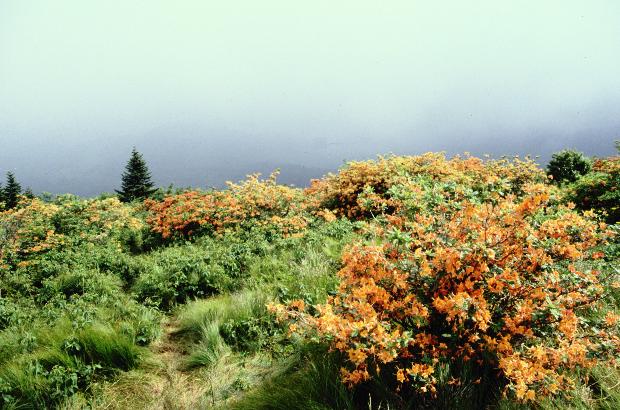 native rhododendron. The Flame Azaleas, R. calendulaceum, seem to bloom
