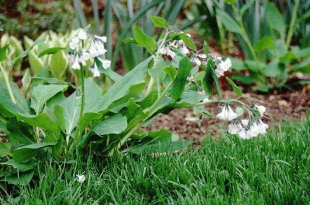 a white form of Virginia Bluebells, Mertensia virginica alba.