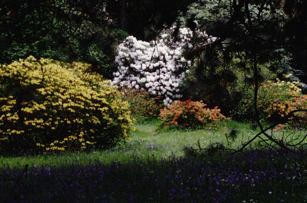 Knaphill azaleas, I could see the tops of huge rhododendrons blooming along