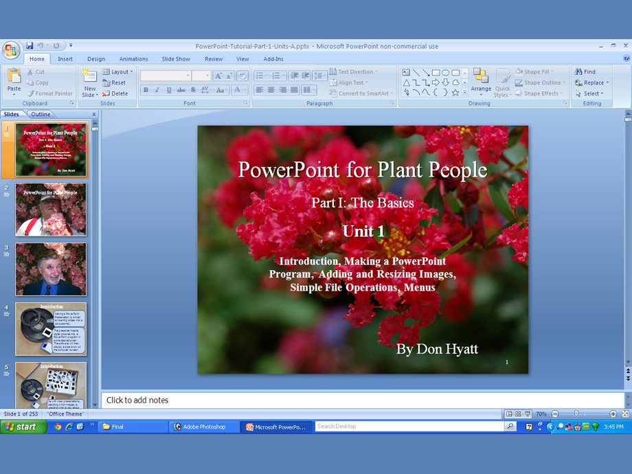 show. This was designed as a hands-on workshop that might last approximately 3 hours. It contains 5 units and progresses from simple PowerPoint